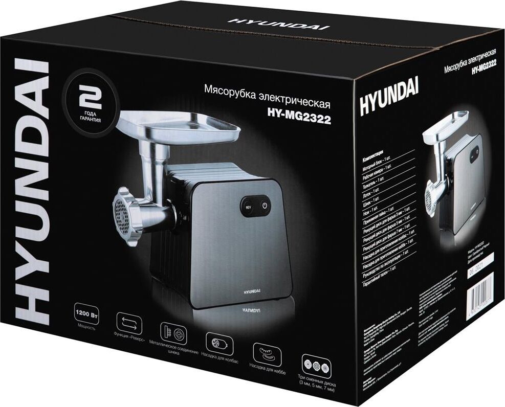 Мясорубка HYUNDAI HY-MG2322 1200Вт черный/серебристый