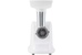 Мощность 1800 Вт, функция РЕВЕРС, 3 решетки с отверстиями разного диаметра (3/5/7 мм), решетки и нож из высококач. нерж. стали, удобный толкатель, насадка для приготовления домашней колбасы, насадки "КеББЕ", материал корпуса пластик, материал лотка - пластик.