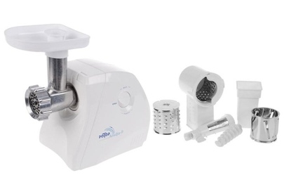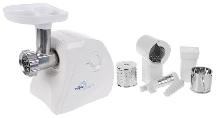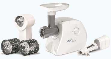 Мощность 1500Вт. Тип мясорубки шнековый. Производ-ть при пригот-и фарша не менее 35 кг/ч. Габариты: 245х151х213 мм. Комплектация: мясорубка + соковыжималка, малая овощерезка. РЕВЕРС.