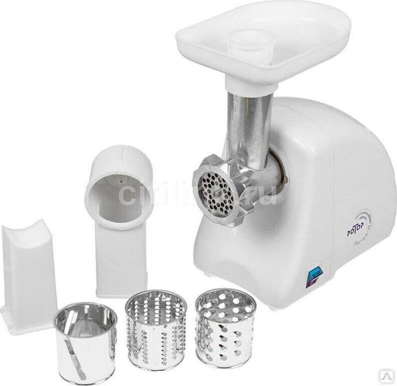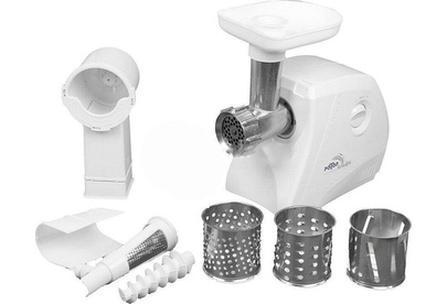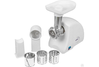 Мощность 1500Вт. Тип мясорубки шнековый. Производ-ть при пригот-и фарша не менее 35 кг/ч. Габариты: 245х151х213 мм. Комплектация: мясорубка + соковыжималка, малая овощерезка. РЕВЕРС.