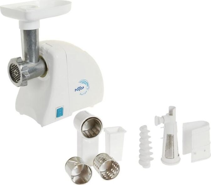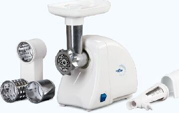 Мощность 1500Вт, РЕВЕРС, металлический привод-шнек, кухонный комбайн (три насадки для шинкования овощей, насадка-соковыжималка).