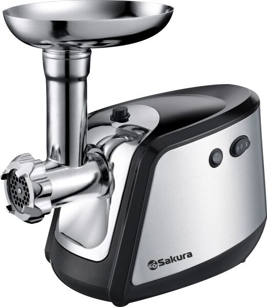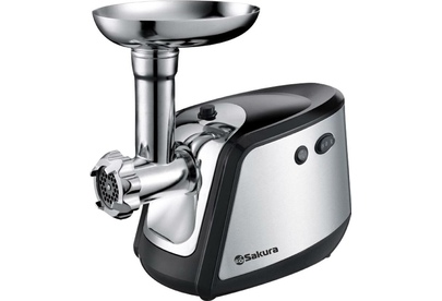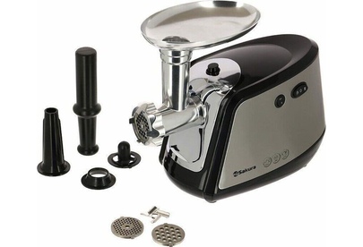 Мясорубка электрическая, 1500 Вт, с функцией реверса, насадками кеббе, для приготовления сосисок и тремя дисками в комплекте. Материал корпуса: пластик. Материал лотка: металл.