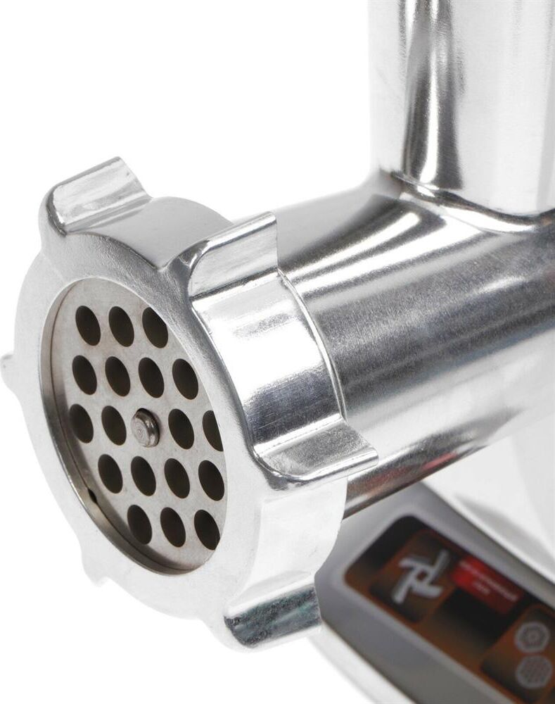 Мощность: 2000 Вт Функция реверс Материал корпуса: нержавеющая сталь с хромированной вставкой Прорезиненные ножки Материал лотка: металл Толкатель Материал шнека: металл Материал ножа: нержавеющая сталь Диски для измельчения: 5 мм и 8 мм, материал: металл Длина сетевого кабеля: 1,2 м Отключение при перегреве