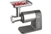 Мясорубка, мощность 2400 Вт, функция реверс, литой алюминиевый корпус, мощный медный мотор с защитой от перегрева, металлические шестеренки и металлический редуктор, набор решеток для фарша: маленькая (4мм), средняя (7мм) и для рубки мяса, низкий уровень шума - менее 75 дБ, надежный фиксатор рабочей головы, прорезиненные нескользящие ножки. Аксессуары: насадки для приготовления сосисок и колбасок кеббе, пластиковый контейнер. Производительность: 2.5кг/мин. Цвет: серый