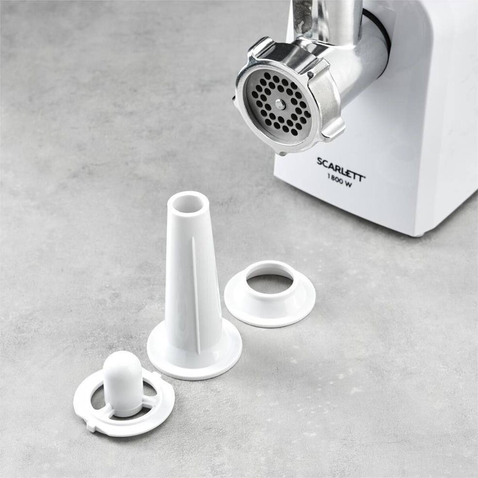 Тип: С овощерезками Мощность, Вт: 1800 Производительность : 2 Функция реверс: Да Перфорированные диски для мяса, размер отверстий мм: 5 и 7 мм Насадка кеббе: Да Насадка для приготовления домашних сосисок: Да Насадки для терки и шинковки овощей, шт.: 2 Цвет: Белый