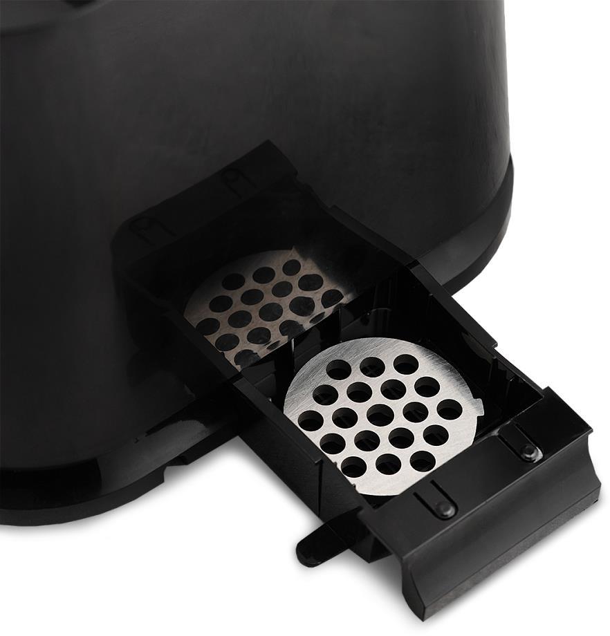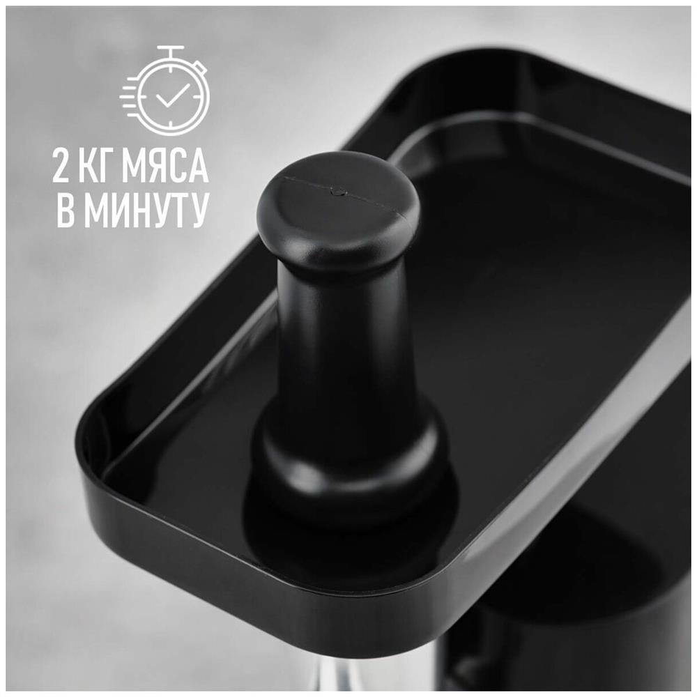 Электрическая мясорубка Тип: Без овощерезок Мощность, Вт: 1800 Принадлежность к линейке: Smart Storage Производительность кг/мин: 2 Функция реверс: Да Перфорированные диски для мяса, размер отверстий мм: 5 и 7 Защита двигателя от перегрузки: Да Металлическое соединение шнека: Да Нож из нержавеющей стали: Да Насадка кеббе: Да Насадка для приготовления домашних сосисок: Да Материал лотка для подачи мяса: Пластик Резиновые ножки для повышенной устойчивости: Да Количество решеток: 2 Длина электрошнура, м: 1 Особенности модели: Хранение диска и смотка шнура