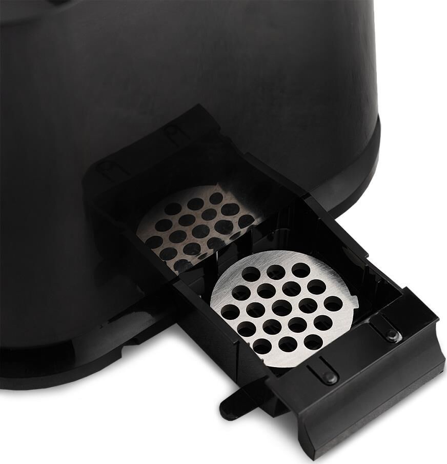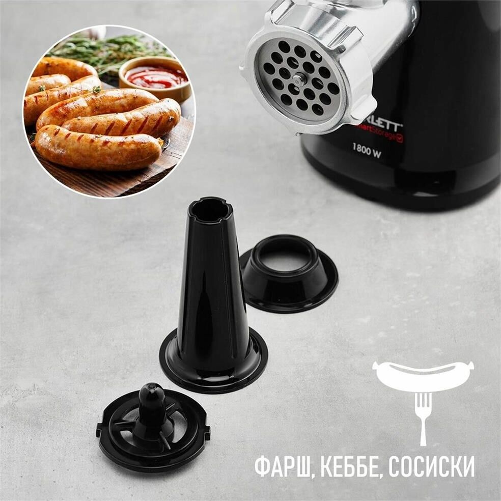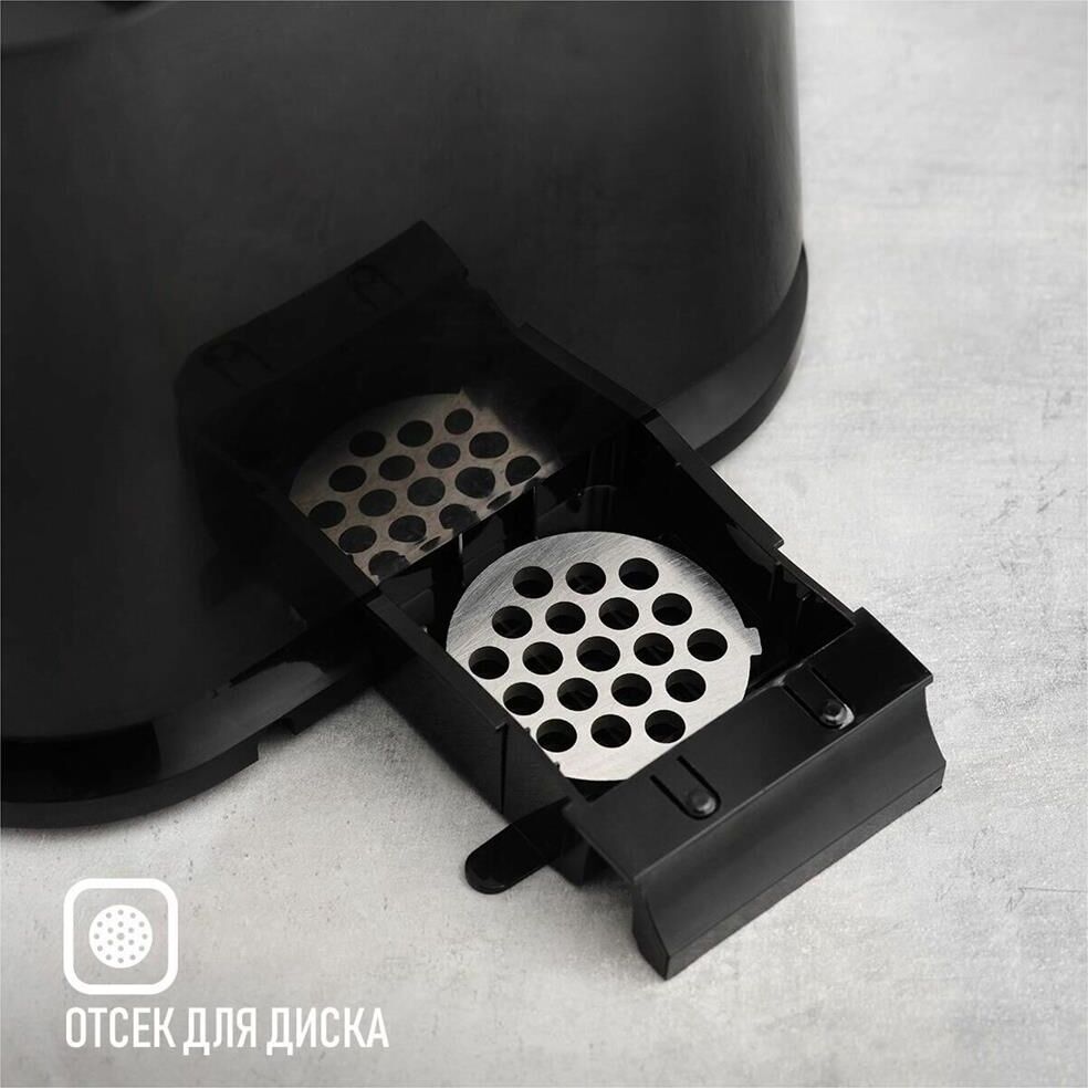 Электрическая мясорубка Тип: Без овощерезок Мощность, Вт: 1800 Принадлежность к линейке: Smart Storage Производительность кг/мин: 2 Функция реверс: Да Перфорированные диски для мяса, размер отверстий мм: 5 и 7 Защита двигателя от перегрузки: Да Металлическое соединение шнека: Да Нож из нержавеющей стали: Да Насадка кеббе: Да Насадка для приготовления домашних сосисок: Да Материал лотка для подачи мяса: Пластик Резиновые ножки для повышенной устойчивости: Да Количество решеток: 2 Длина электрошнура, м: 1 Особенности модели: Хранение диска и смотка шнура