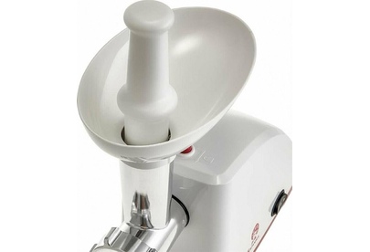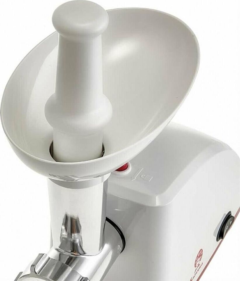 Номинальная мощность 1600 Вт. Производительность 1,5 кг/мин. Подходит для обработки любого вида мяса. Высокая производительность. Прочный металлический шнек. Металлический привод шнека. Нож из высококачественной нержавеющей стали. 2 решетки для измельчения с отверстиями различного диаметра. Функция РЕВЕРС. Многоуровневая защита: автоматическое отключение при забивании горловины продуктами, система защиты двигателя от перегрузок и перегрева. Цвет: белый с красным. Удобный толкатель. Насадка для набивки колбас. Насадки КУББЕ.