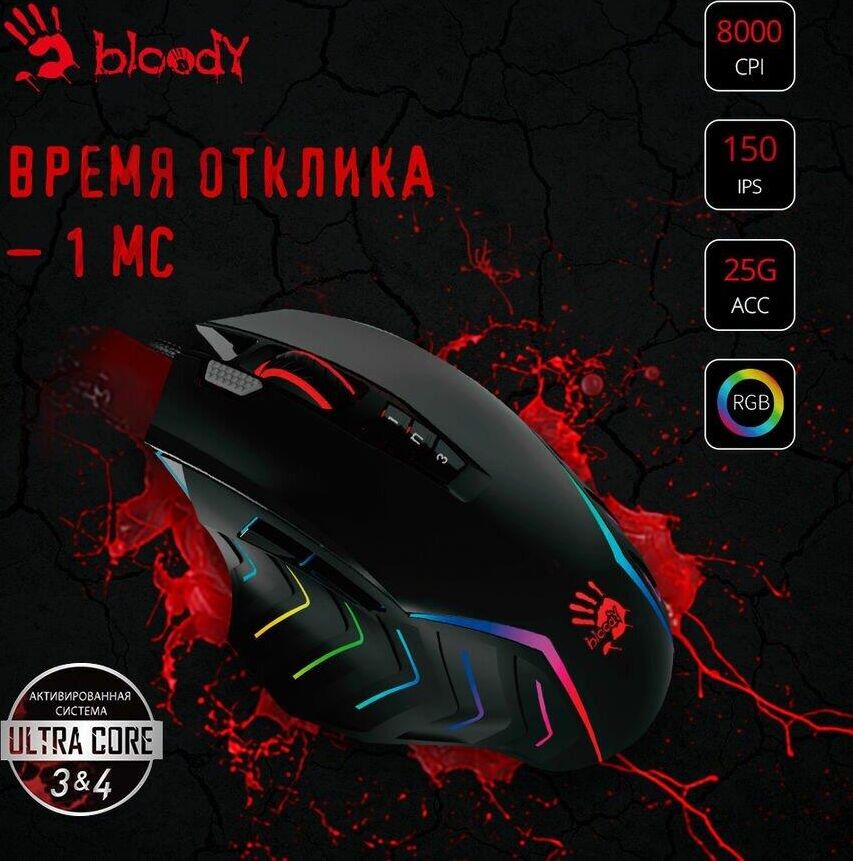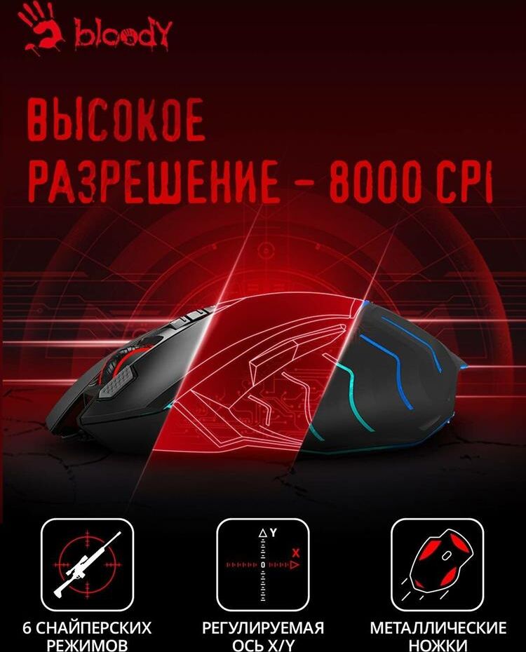 Мышь беспроводная A4TECH Bloody AL90 Blazing черный лазерная (8200dpi) USB2.0 игровая (8but)