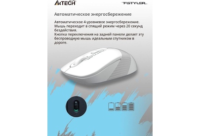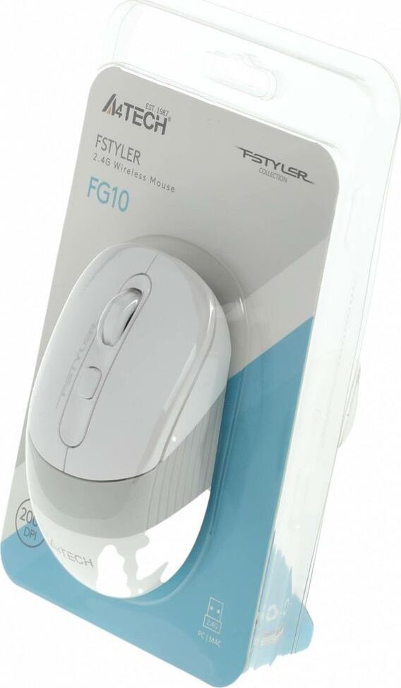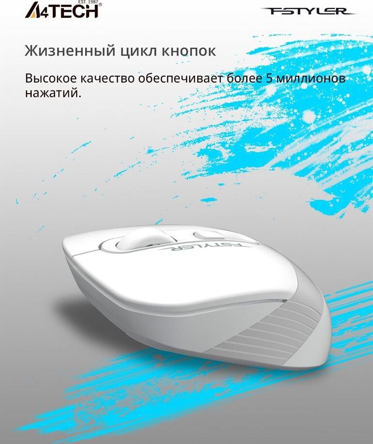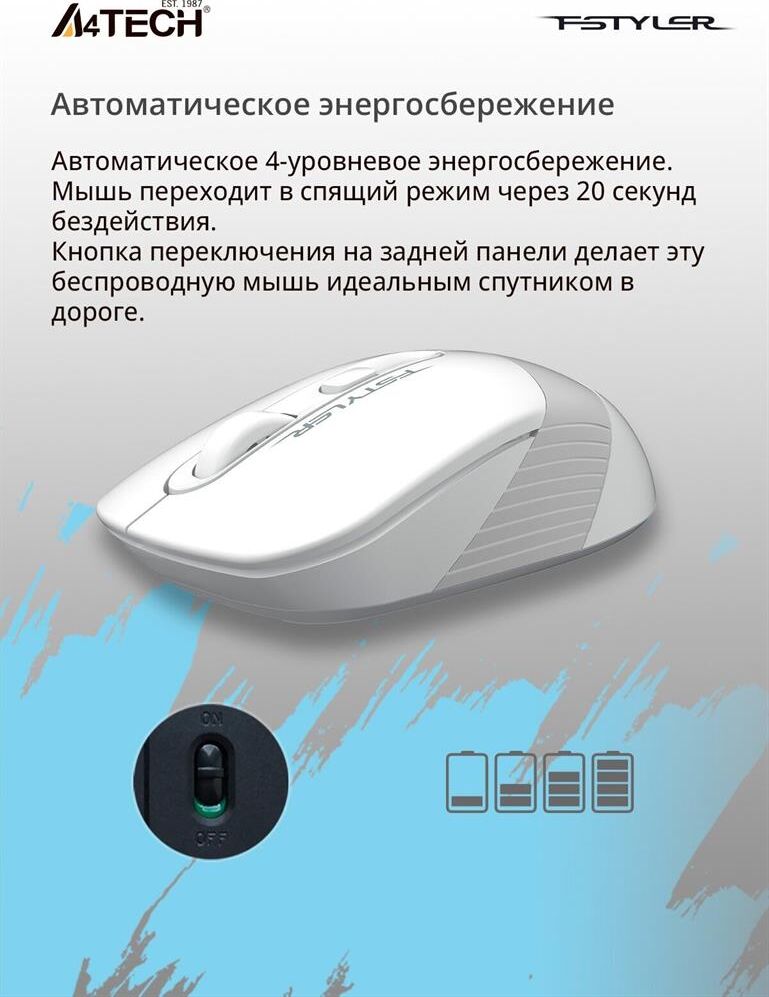Мышь беспроводная A4TECH FStyler FG10 белый/серый оптическая (2000dpi) беспроводная USB