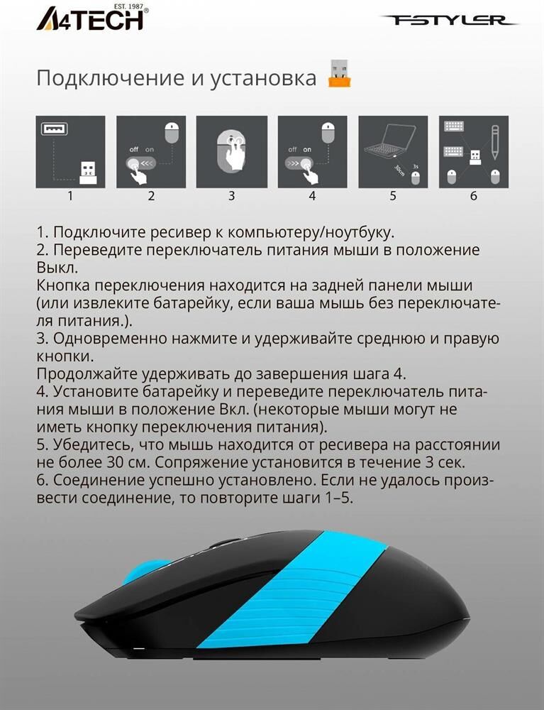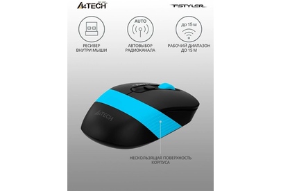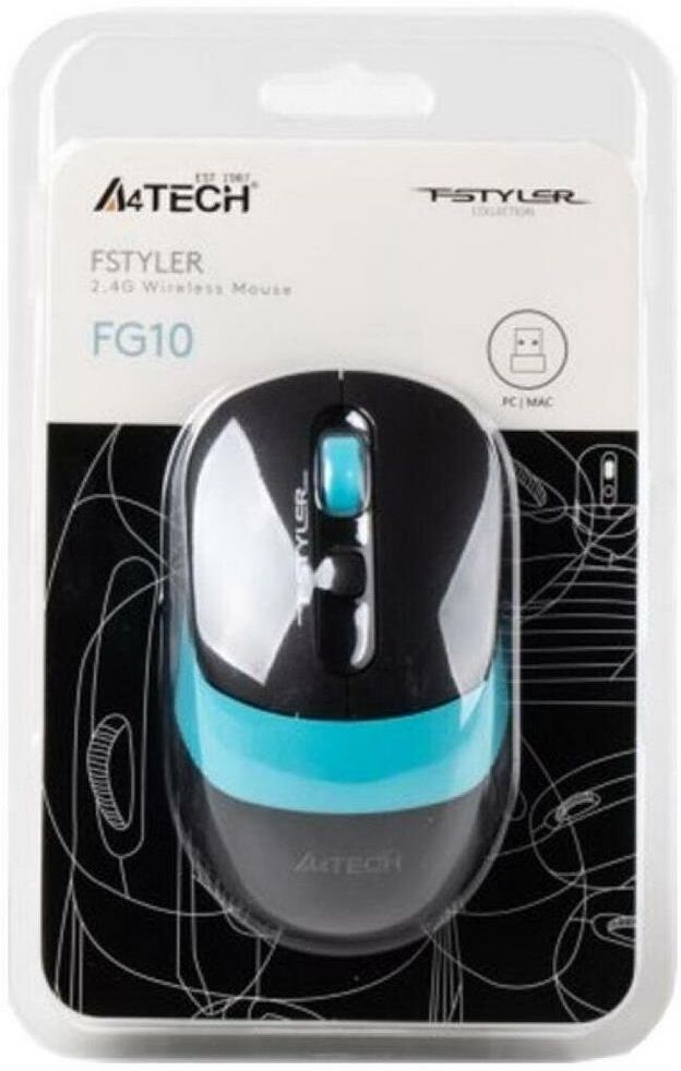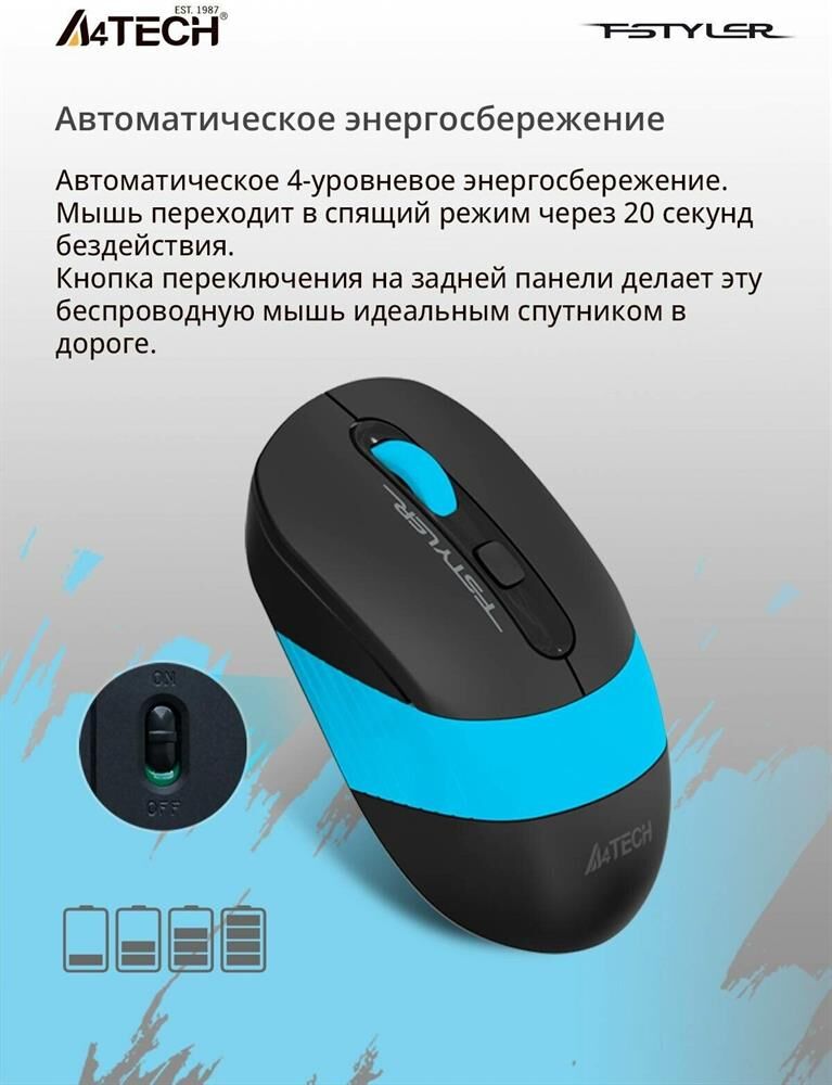 Мышь беспроводная A4TECH Fstyler FG10S черный и синий