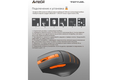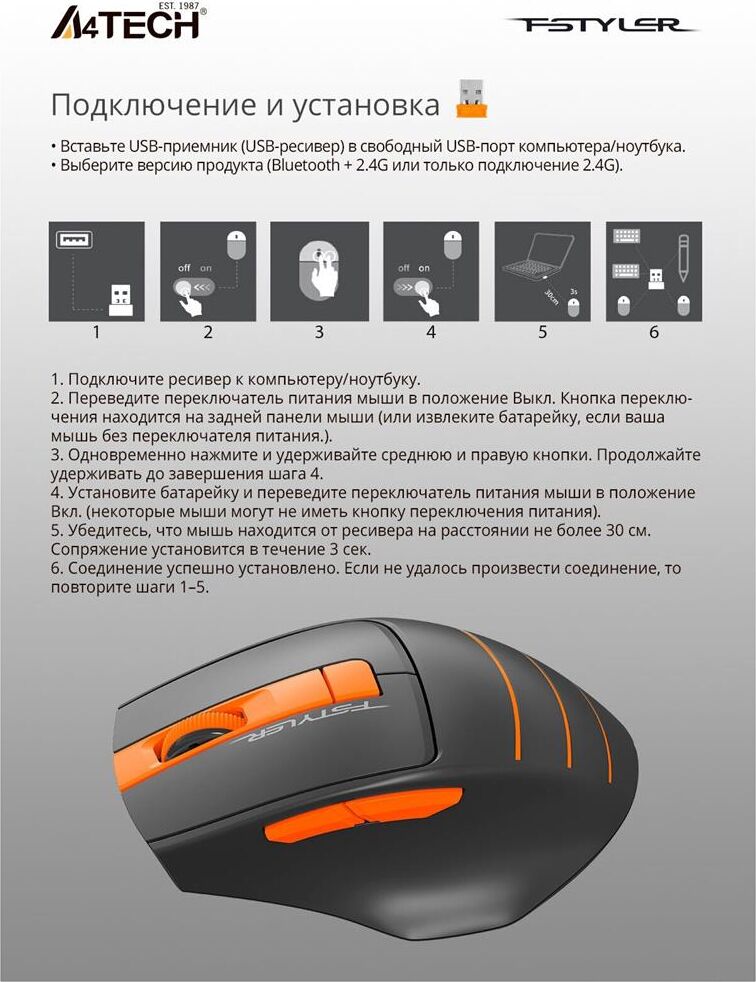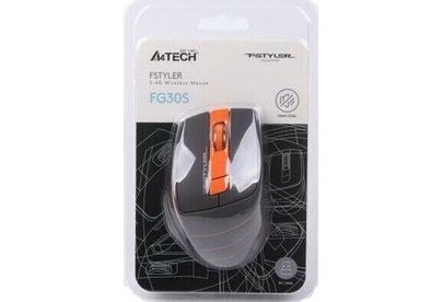 Мышь беспроводная A4TECH Fstyler FG30 серый/оранжевый оптическая (2000dpi) беспроводная USB