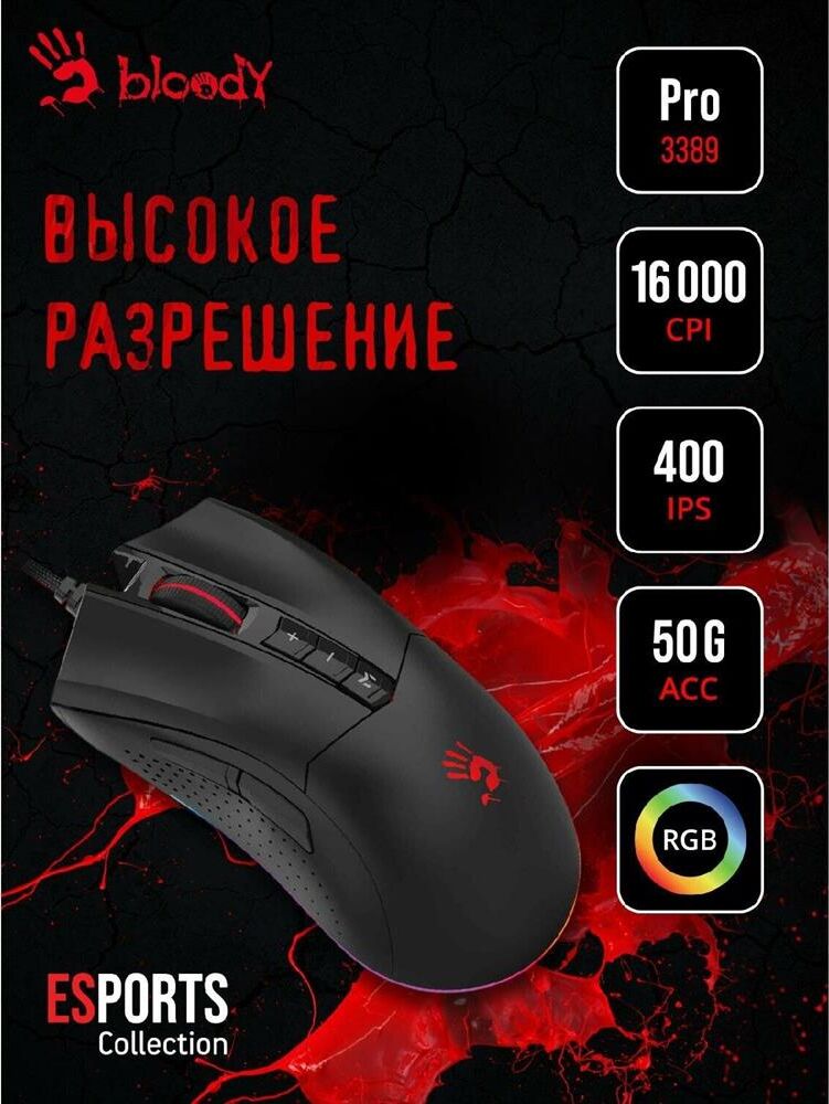 Мышь беспроводная A4TECH Мышь Bloody ES9 Pro черный оптическая 16000dpi USB 7but