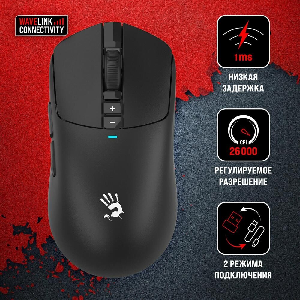 Мышь беспроводная A4TECH Мышь Bloody R72 Pro Duo черный оптическая 26000dpi беспров. USB/USB-C 7but