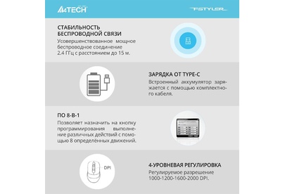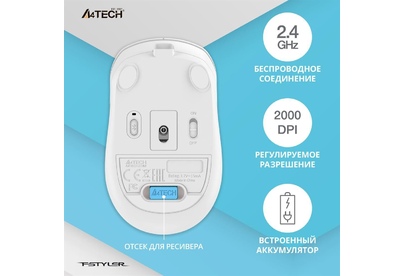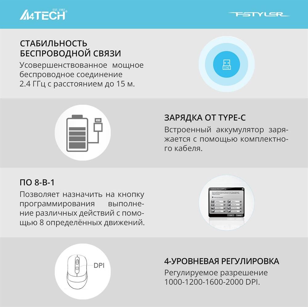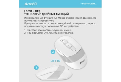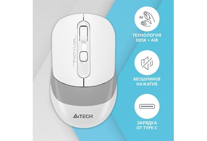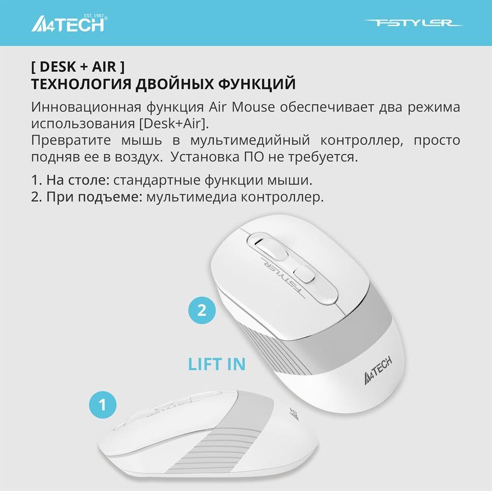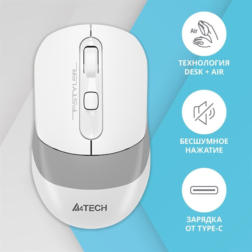 Мышь беспроводная A4TECH Мышь Fstyler FB10CS белый/серый оптическая 2000dpi silent беспров. BT/Radio USB 4but (FB10CS