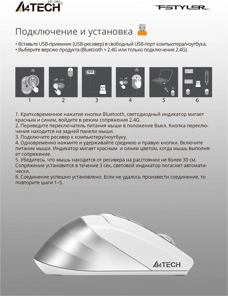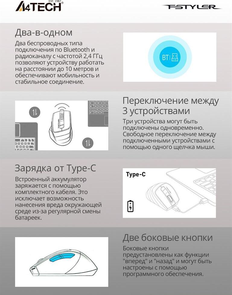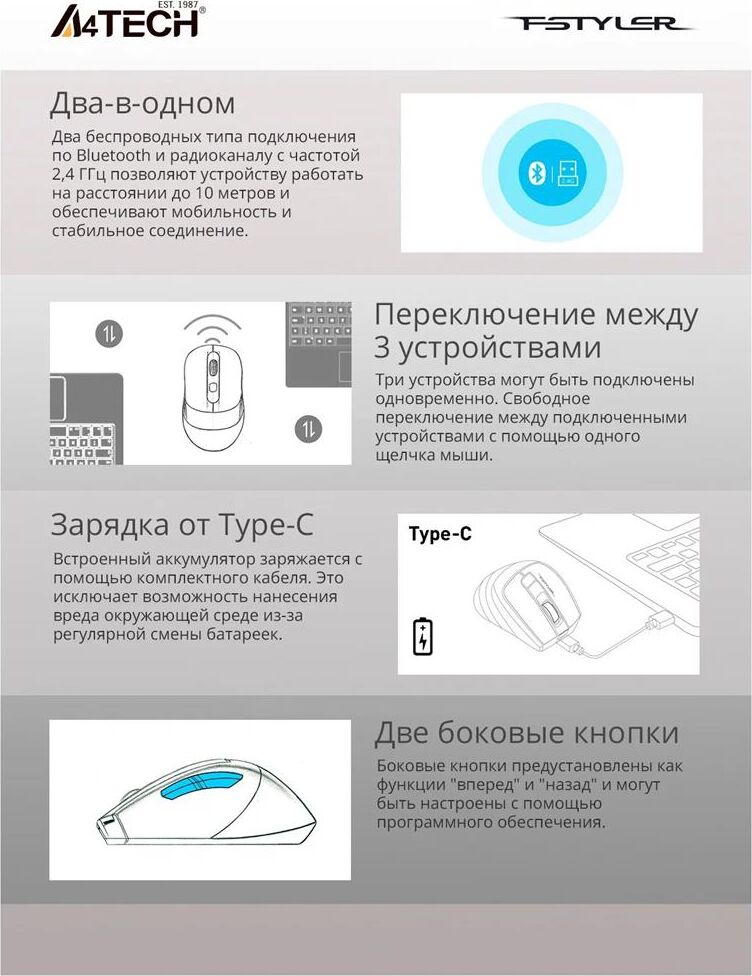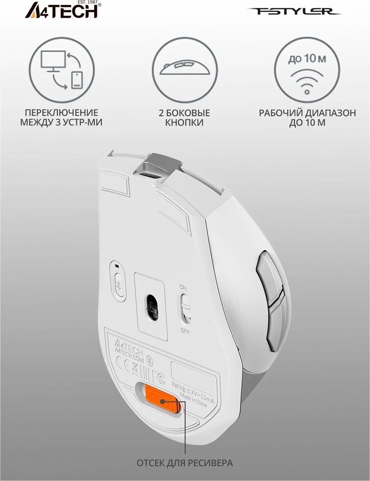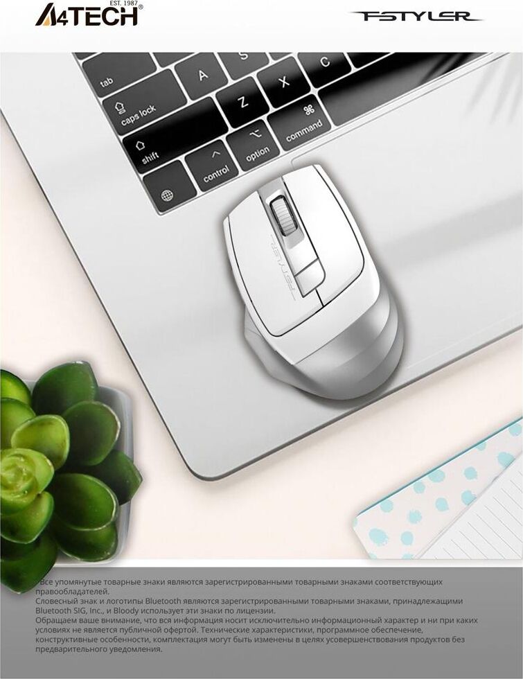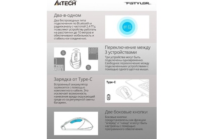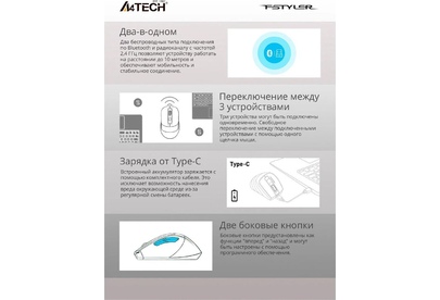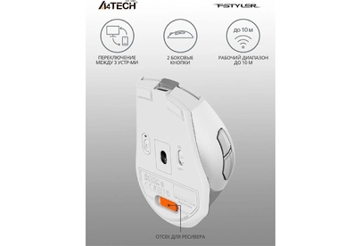Мышь беспроводная A4TECH Мышь Fstyler FB35C белый оптическая 2000dpi беспров. BT/Radio USB 6but (FB35C ICY WHITE)