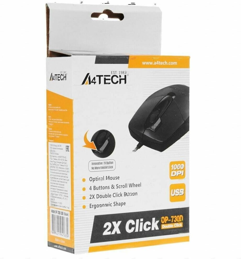 Мышь беспроводная A4TECH Мышь OP-730D черный оптическая 1200dpi USB 4but