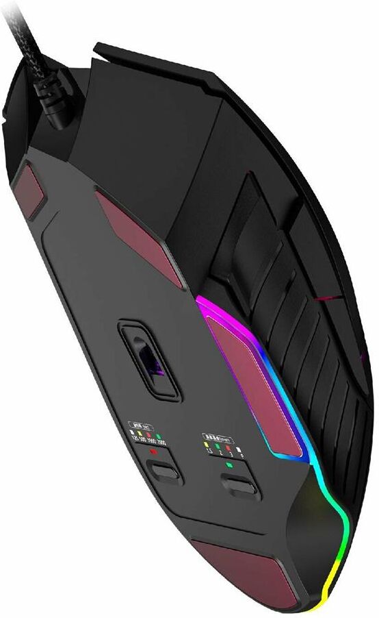Технология: оптическая. Подключение по USB: есть. Тип соединения мыши: проводная. Разрешение сенсора, макс.: 12000. Изменение чувствительности сенсора: есть. Количество кнопок: 10. Колесо прокрутки: есть. Для геймеров: да. Питание от: по шине. Длина провода: 1.8. Хват: для правой руки. Поддержка разрешений: 100-12000. Интерфейс подключения: USB. Частота опроса USB порта: 125-2000. Количество программируемых клавиш: 8. Возможность работы на покрытиях: на любой поверхности. Подсветка: есть. Тип подсветки: RGB. Габариты упаковки (ед) ДхШхВ: 0.22x0.16x0.07. Вес упаковки (ед): 0.28. Страна производитель: Китай. Время отклика: 1. Сенсор: Max BC3332-A. Ресурс ножек мыши: 300. Гарантия: 12 мес.. MTBF: 50000000 кликов. Цвет: красный и черный. Размеры мыши (ДхШхВ): 135 х 77 х 43 мм. Максимальное ускорение: 35 G. Совместимость с ОС: Windows. Дизайн: для правой руки. Размеры (ДхШхВ): 135 х 77 х 43 мм. Длина провода: 1.8 м. Количество кнопок: 10; колесо прокрутки. Тип: игровая, оптическая, проводная, USB; с подсветкой. Се