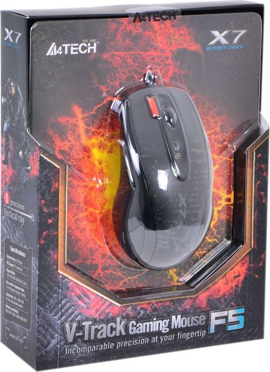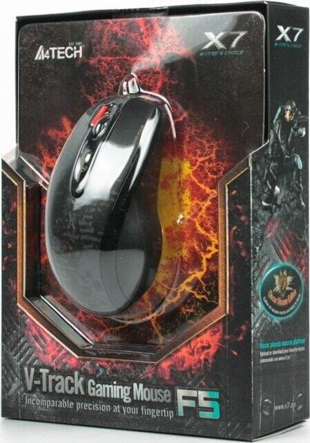 Разработанная для любителей многопользовательских шутеров геймерская A4TECH V-Track F5 удобно ложится в руку, поддается тонкой настройке и отличается оригинальным дизайном. Расширенный набор кнопок пригодится в напряженных игровых сражениях. При необходимости кнопки можно перепрограммировать. Благодаря эргономичным элементам корпуса рука не устанет после многочасовой работы за компьютером. Матовое покрытие корпуса предотвращает скольжение ладони. A4TECH V-Track F5 способна быстро и четко работать без коврика – на шершавой или неровной поверхности. Эта модель с USB-кабелем совместима с любым ПК или ноутбуком и не требует долгой настройки. Всё, что нужно для начала работы – это подключить к USB-разъему. В комплекте имеется диск с программным обеспечением.