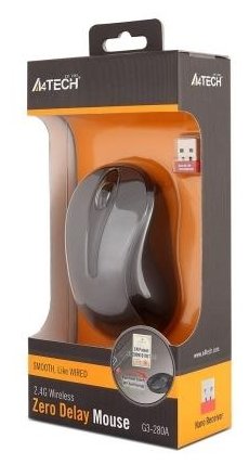 Мышь беспроводная A4TECH V-Track G3-280A серый/черный оптическая (1000dpi) беспроводная USB (2but)