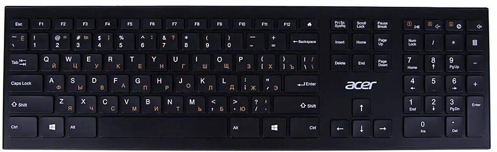 Мышь беспроводная ACER Клавиатура OKR010 черный USB беспроводная slim Multimedia (ZL.KBDEE.003)