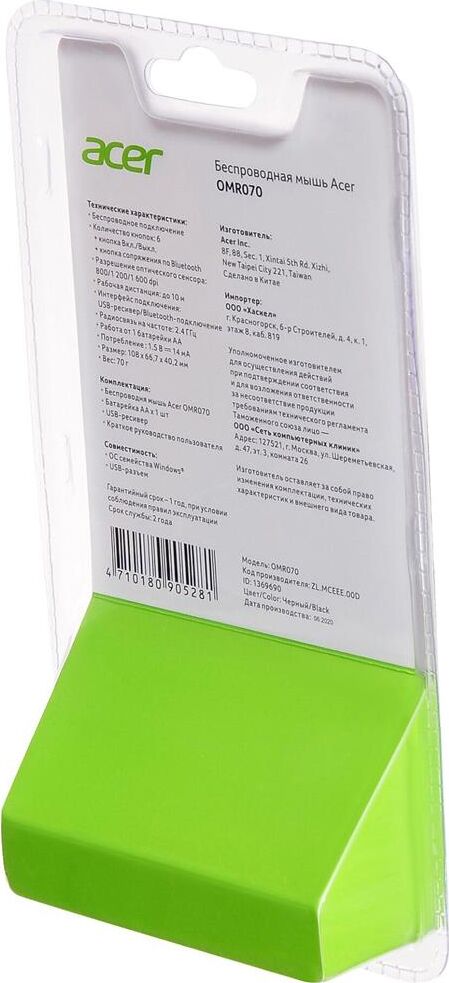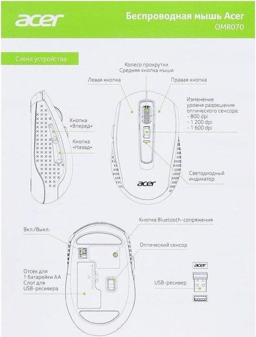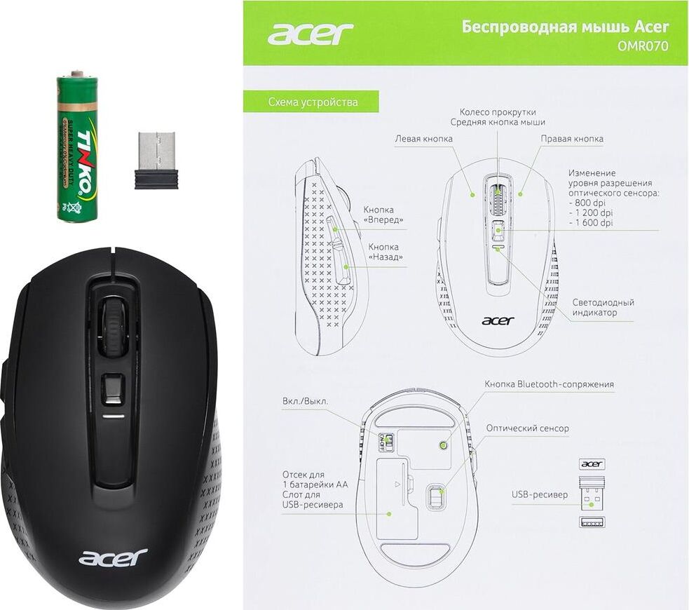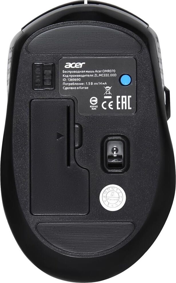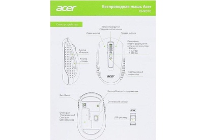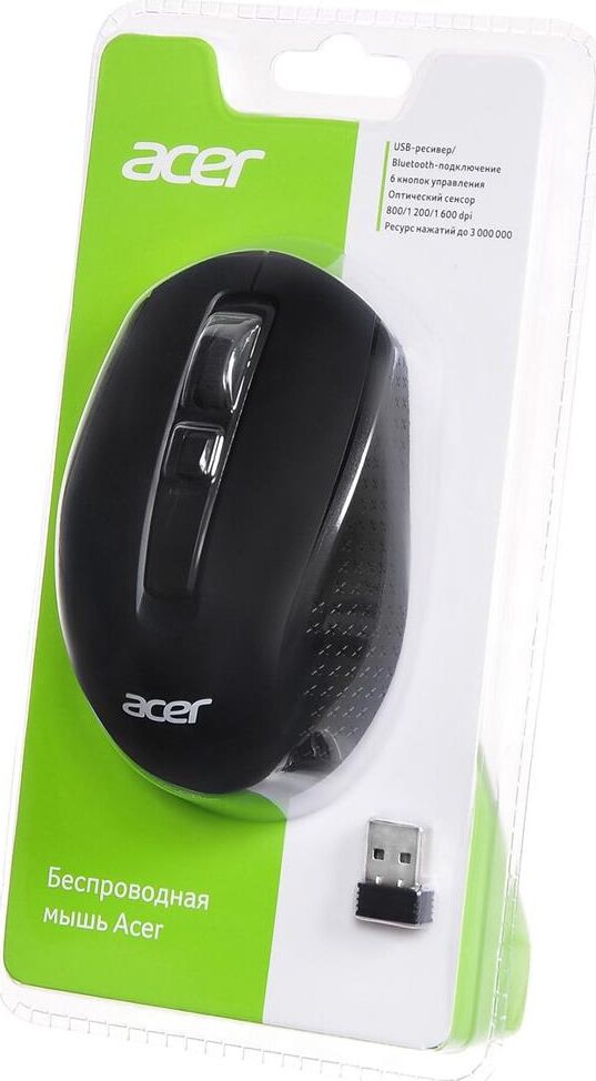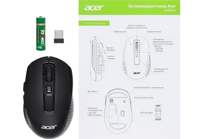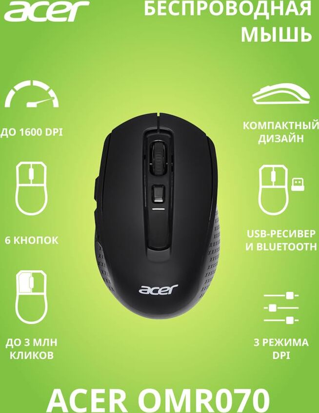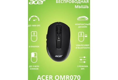 Мышь беспроводная ACER Мышь OMR070 черный оптическая 1600dpi беспров. BT/Radio USB для ноутбука 6but (ZL.MCEEE.00D)