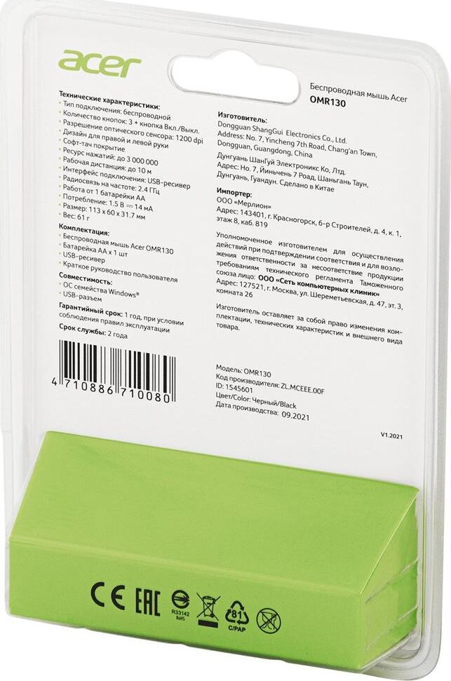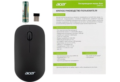 Мышь беспроводная ACER Мышь OMR130 черный оптическая 1200dpi беспров. USB 3but (ZL.MCEEE.00F)
