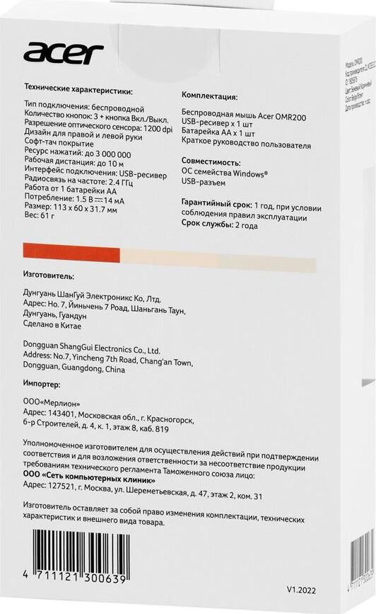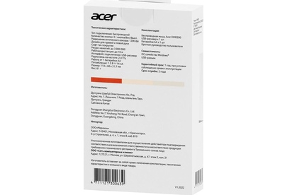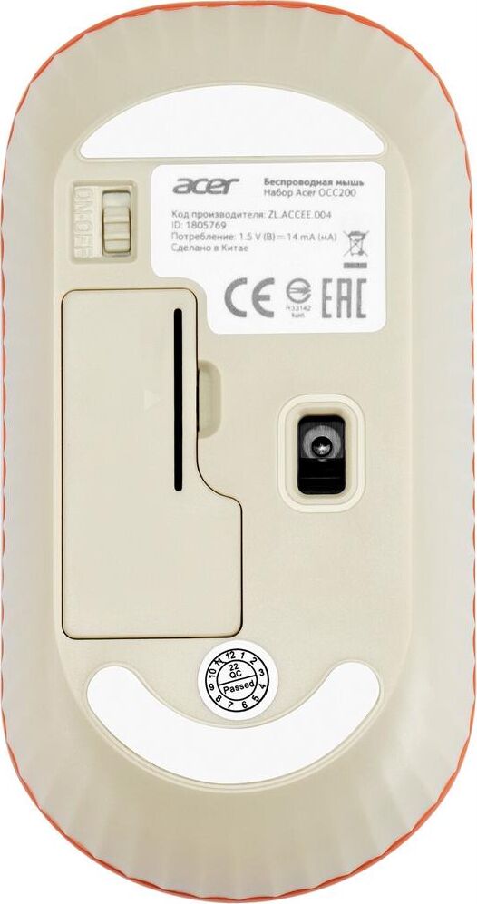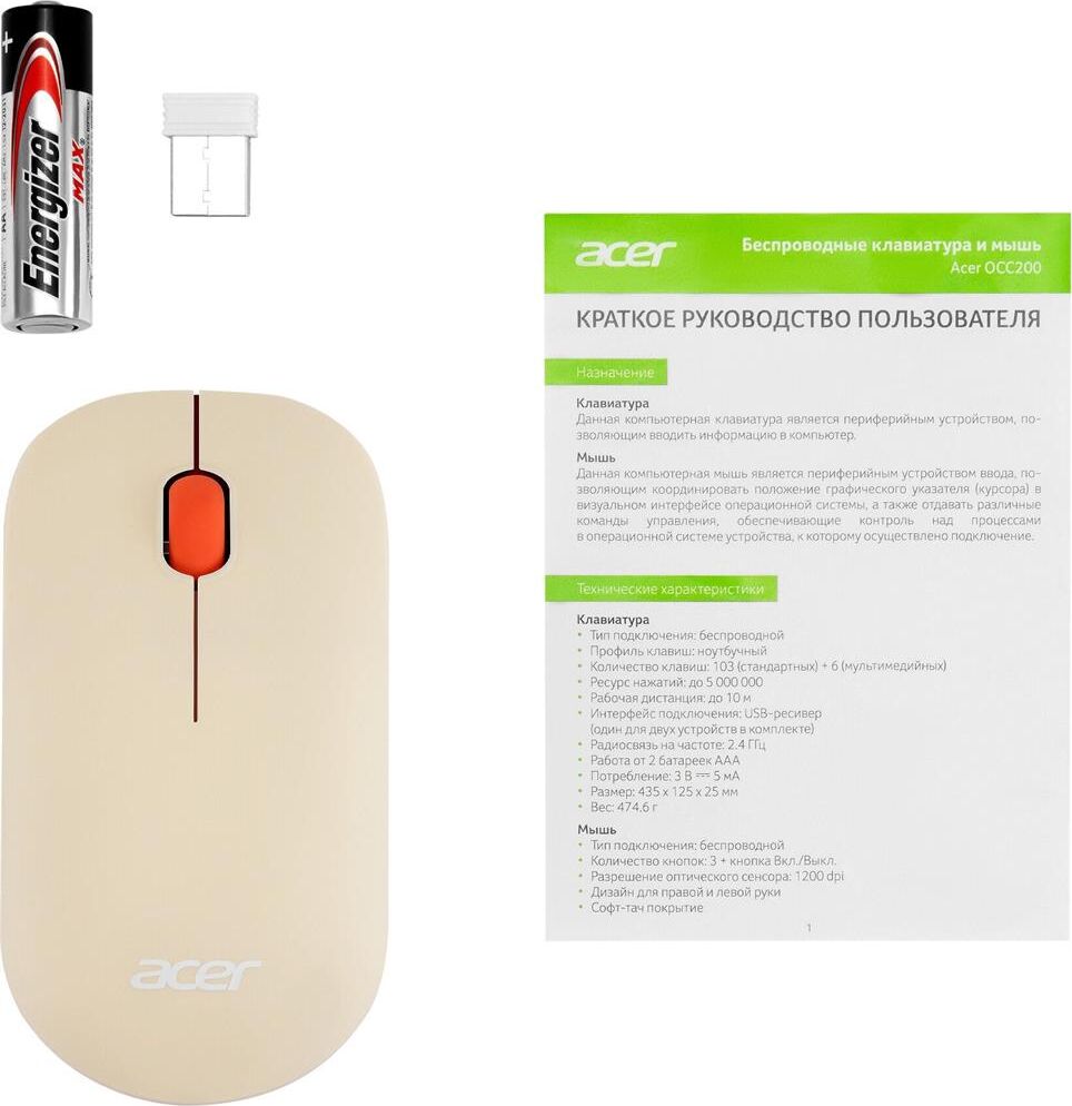Мышь беспроводная ACER Мышь OMR200 белый/желтый оптическая 1200dpi беспров. USB для ноутбука 3but (ZL.MCEEE.020)