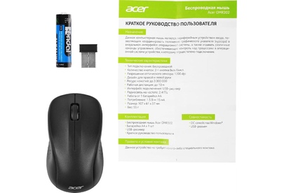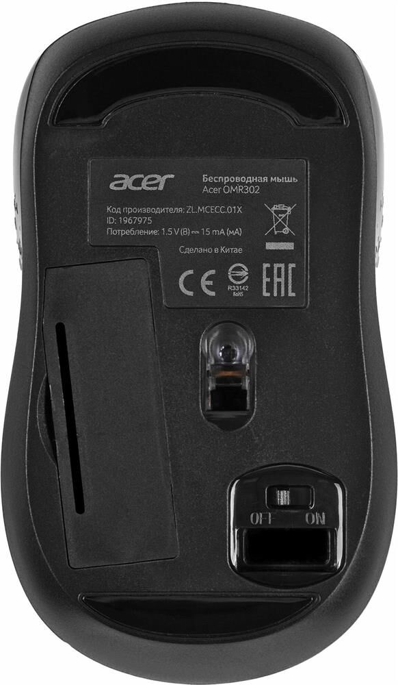 Мышь беспроводная ACER Мышь OMR302 черный оптическая 1200dpi беспров. USB 3but (ZL.MCECC.01X)