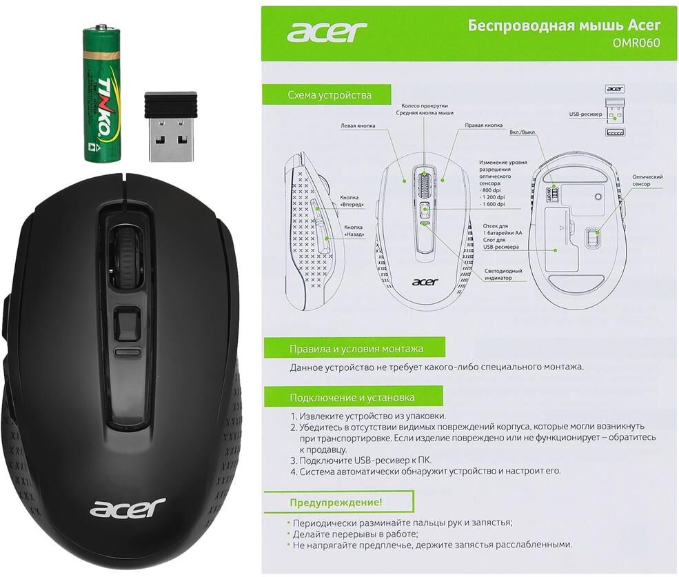 Мышь беспроводная ACER OMR060 Черный (ZL.MCEEE.00C)