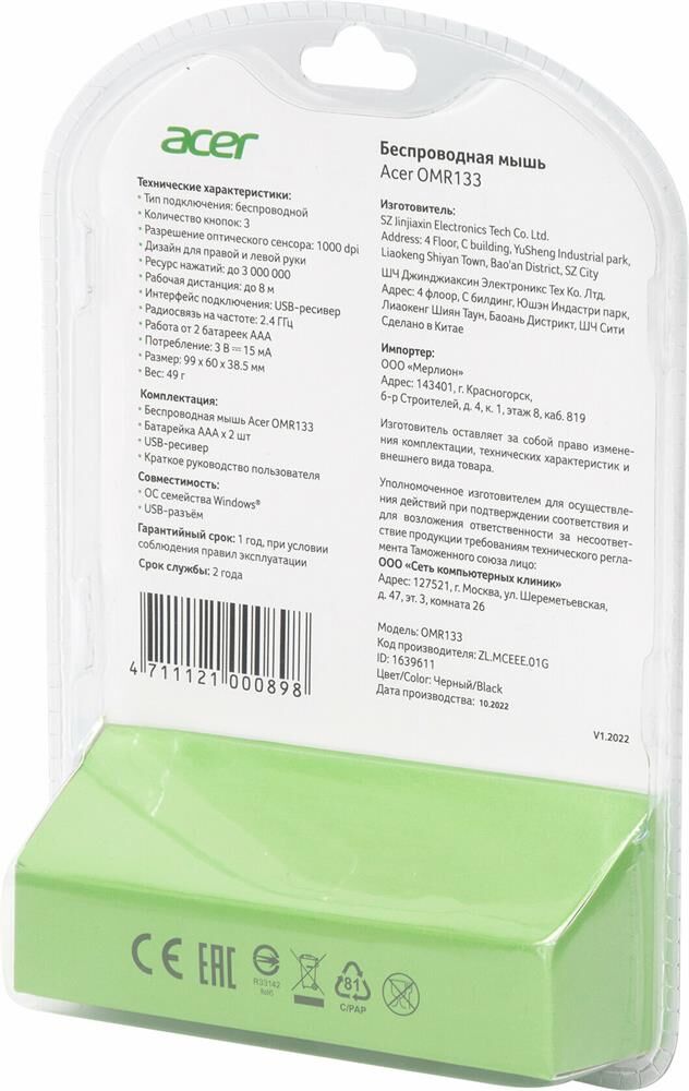 Мышь беспроводная ACER OMR133 черный оптическая (ZL.MCEEE.01G)