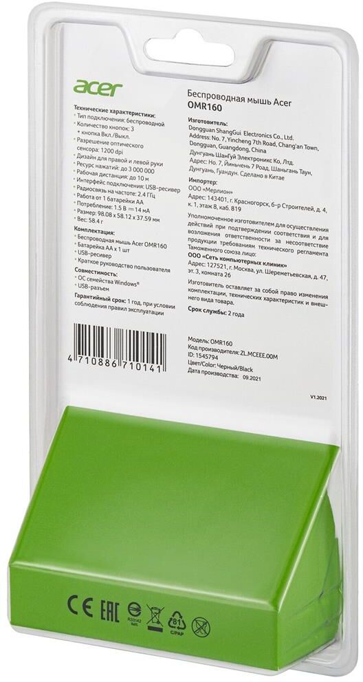 Мышь беспроводная ACER OMR160 Черный (ZL.MCEEE.00M)