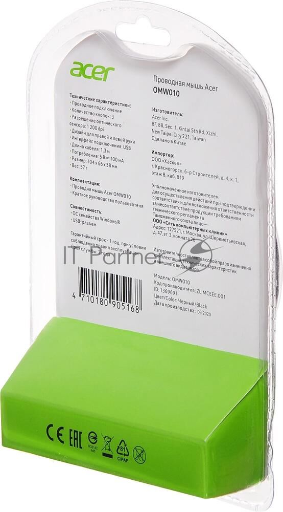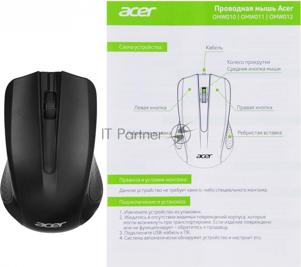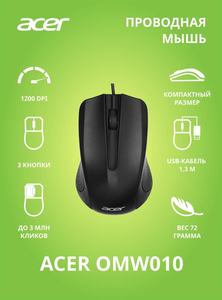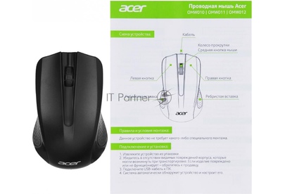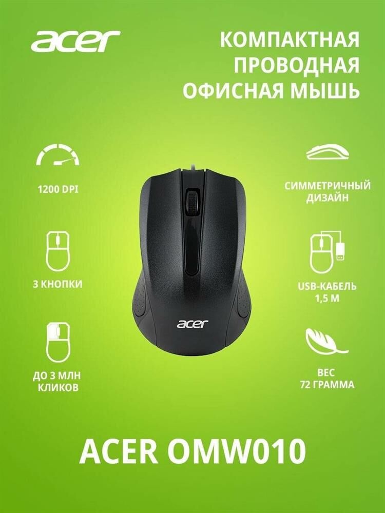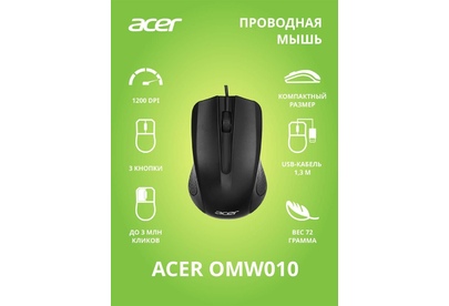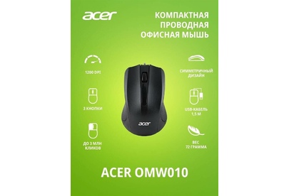 Мышь беспроводная ACER OMW010 черный оптическая (1200dpi) USB (3but)