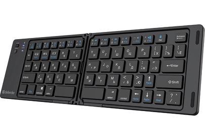 Беспроводная офисная клавиатура с функцией подключения по Bluetooth. Главная особенность модели - компактная складная конструкция, благодаря чему клавиатуру удобно брать в поездки.