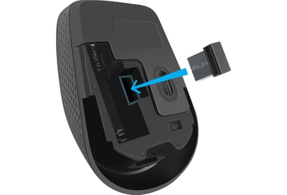 Мышь беспроводная, интерфейс USB, количество кнопок - 2, колесо прокрутки, разрешение 1000 dpi, бесшумное нажатие кнопок, радиус действия до 10 м.