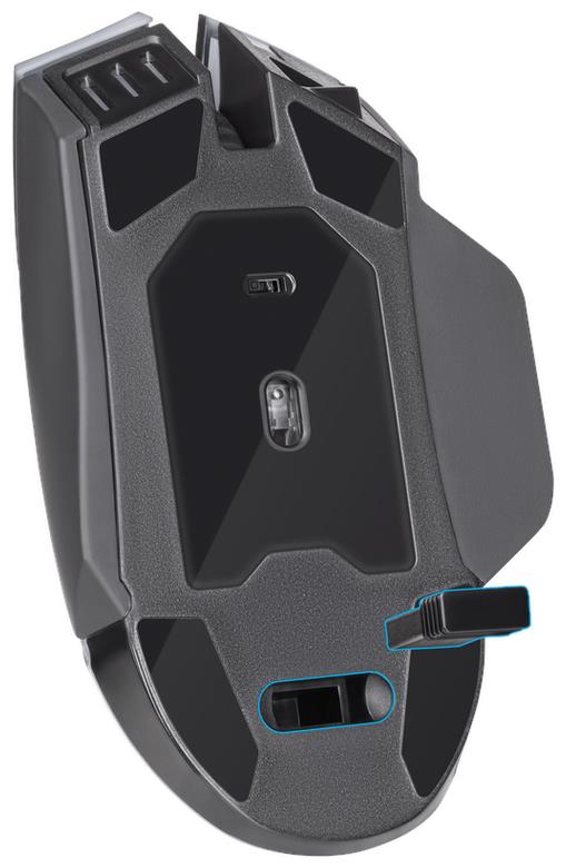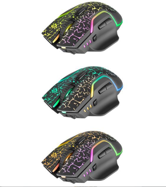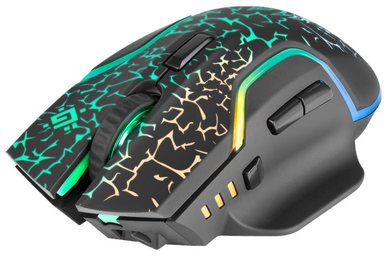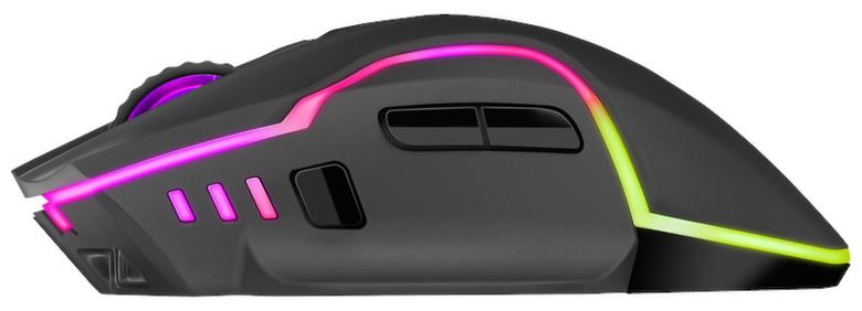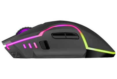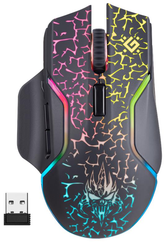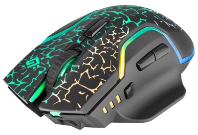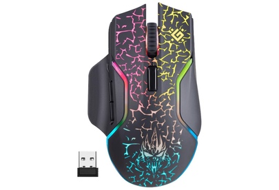Мышь игровая, беспроводная, интерфейс USB, количество кнопок - 6, колесо прокрутки, емкость аккумулятора - 300 мА·ч, изменяемое разрешение 1200 / 2400 / 3200 dpi, Windows 2000/XP/Vista/7/8/10, Mac OS X10, радужная подсветка, радиус действия -до 10 м.