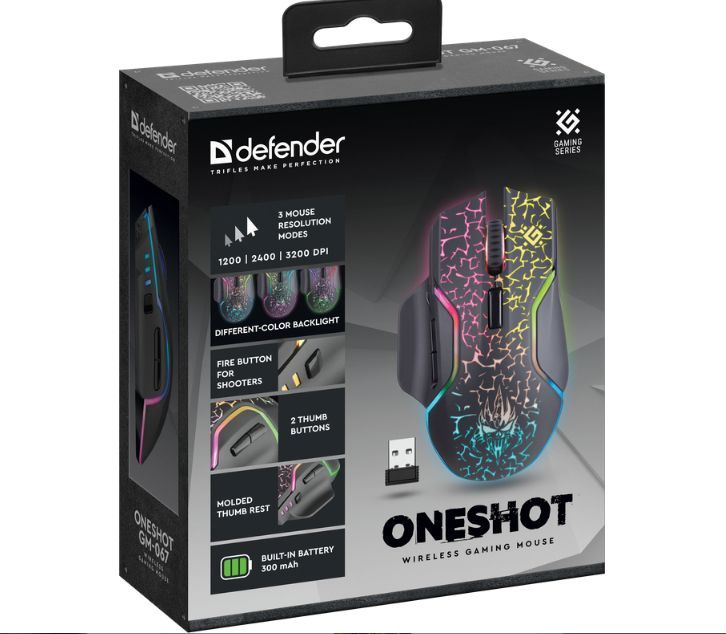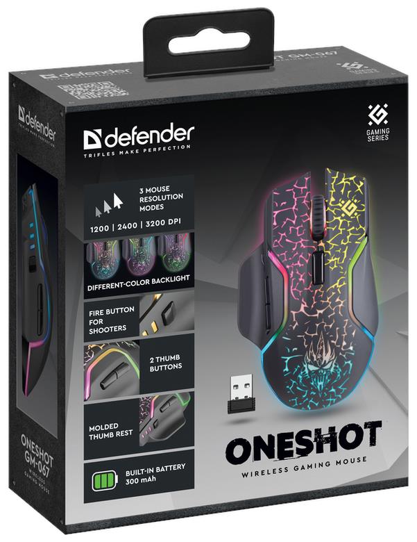 Мышь беспроводная DEFENDER (52067) Oneshot GM-067 черный,