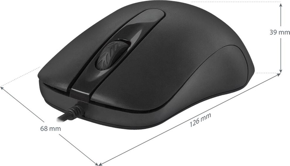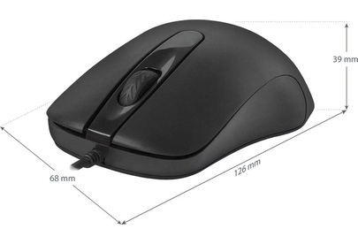 Тип подключения Проводной, Интерфейс подключения USB, Количество кнопок 3 + колесо-кнопка, Тип сенсора Оптический, Разрешение 1000/1200 dpi, Минимальное значение DPI 1000 dpi, Максимальное значение DPI 1200 dpi, Количество нажатий 5 миллионов, Цвет Чёрный, Длина кабеля 1.5±5% м, Системные требования для ПК Windows 2000/XP/Vista/7/8/10, Mac OS X10