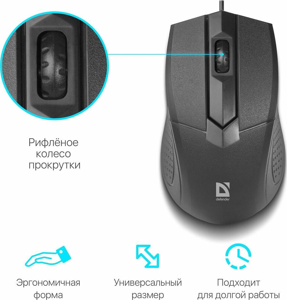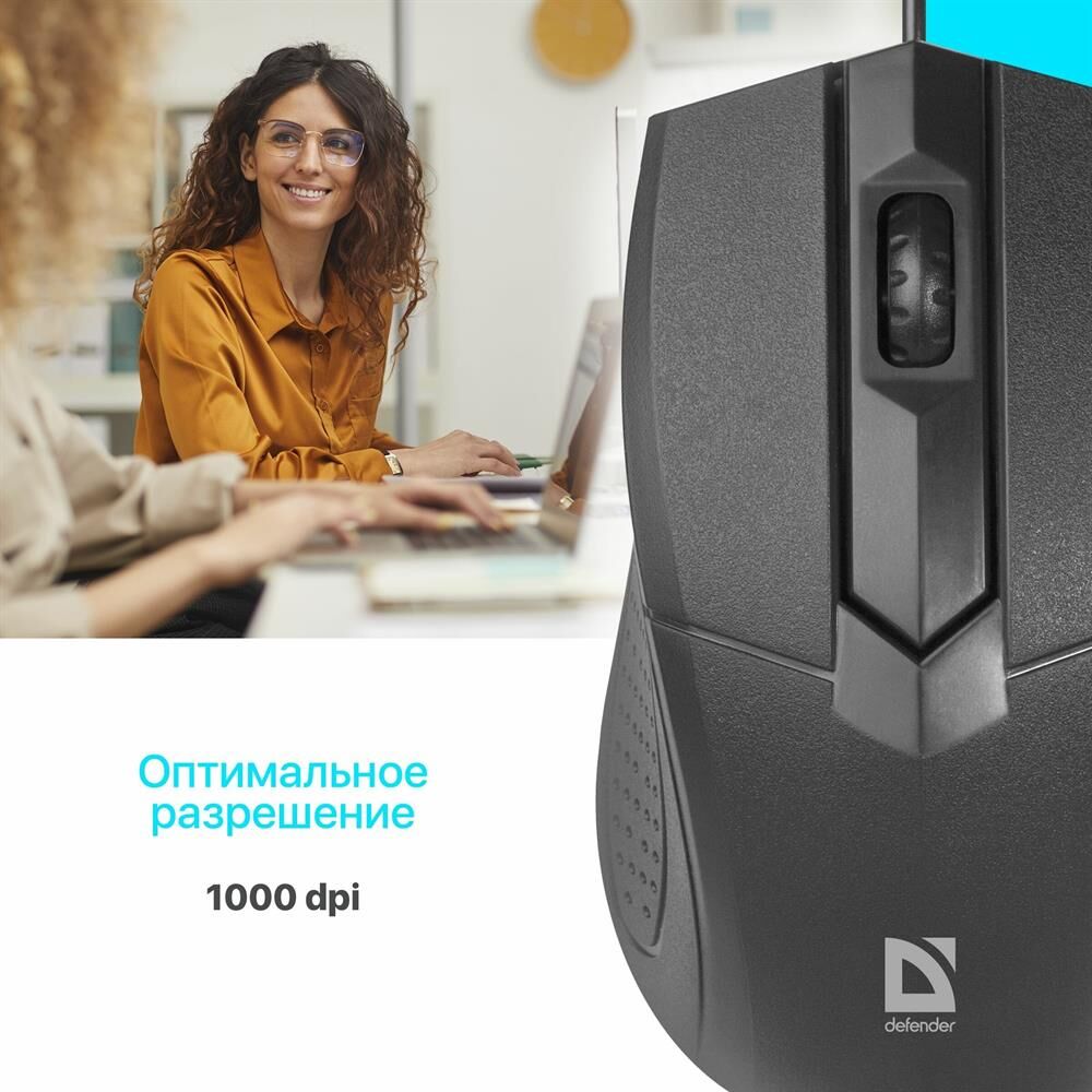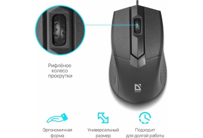 Мышь проводная, оптическая, интерфейс подключения - USB, количество кнопок 2 + колесо-кнопка, разрешение - 1000 dpi, цвет - черный.