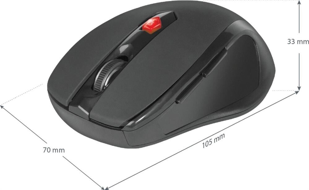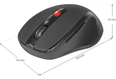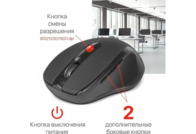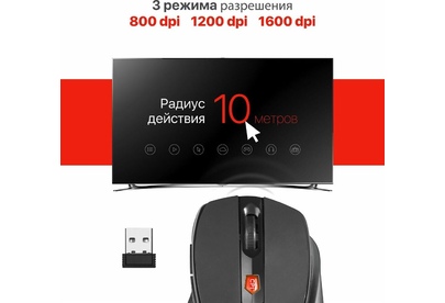 Мышь беспроводная, оптическая, сменное разрешение 800/1200/1600 dpi, количество кнопок: 5 +колесо прокрутки, интерфейс подключения USB, эргономичная форма, батарейка 1хАА (в комплекте), цвет - черный.