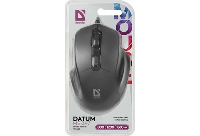 Мышь проводная, интерфейс подключения USB, тип сенсора - оптический, количество кнопок 3 + колесо-кнопка, изменяемое разрешение 800/1200/1600 dpi, покрытие Soft Rubber Skin, длина кабеля - 1,5 м.