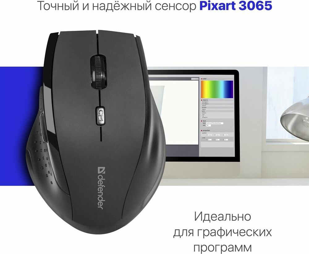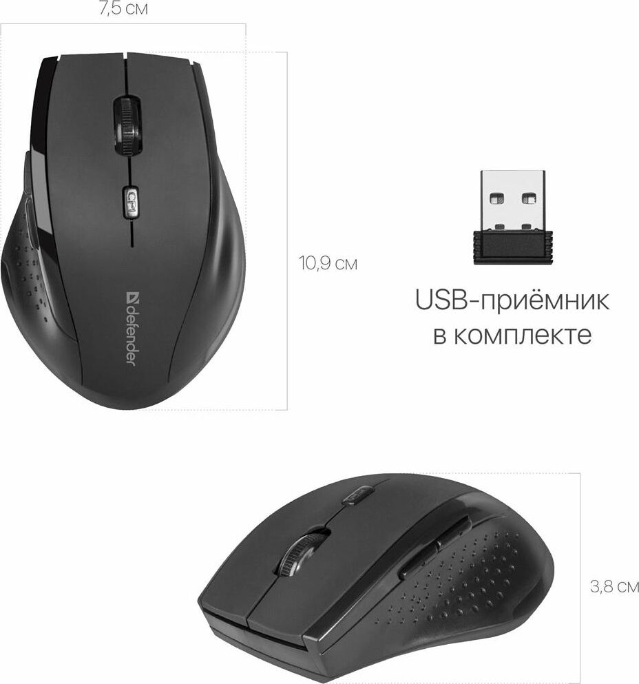 Мышь беспроводная DEFENDER (52365) Accura MM-365 черный