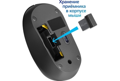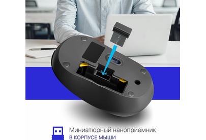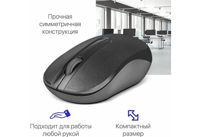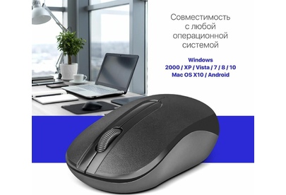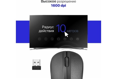 Мышь беспроводная оптическая, интерфейс USB, 2 клавиши+ колесо-кнопка, разрешение сенсора 1600 dpi, радиус действия - до 10 м.