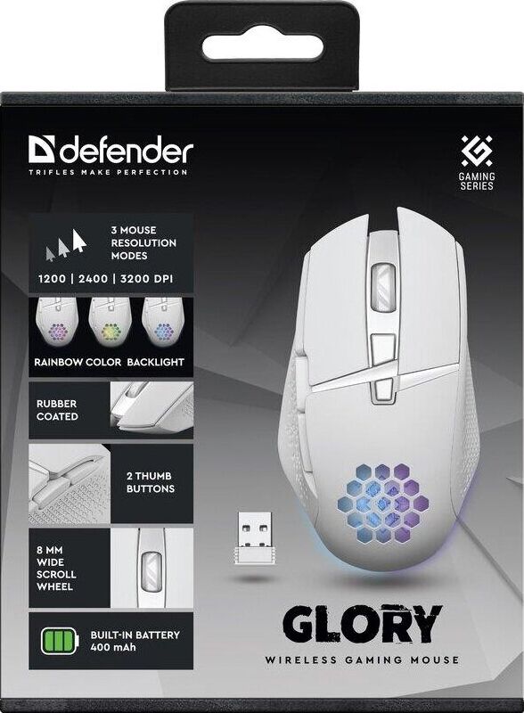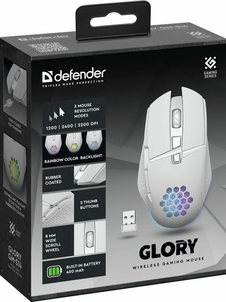 Мышь беспроводная DEFENDER (52513) GLORY GM-514 белый