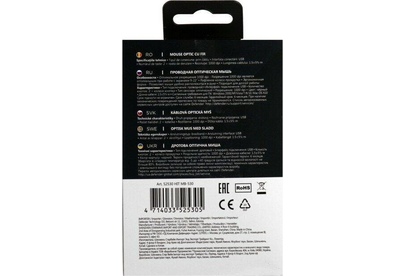 Мышь проводная, интерфейс подключения USB, тип сенсора - оптический, количество кнопок 2 + колесо-кнопка, разрешение - 1000 dpi, длина кабеля - 1,1 м