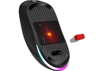 Эргономичная игровая мышь с тремя режимами подключения: проводное, беспроводное по радиоканалу 2.4 Ггц, беспроводное подключение по Bluetooth. Данная модель поддерживает постоянное хранение в памяти двух устройств для подключения по Bluetooth. Также мышь имеет 6 режимов RGB подсветки, встроенный аккумулятор на 400 мАч и тефлоновые ножки для легкого скольжения по поверхности стола.