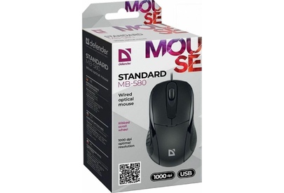 Мышь проводная, оптическая, интерфейс подключения - USB, количество кнопок 2 + колесо-кнопка, разрешение - 1000 dpi, цвет - черный.