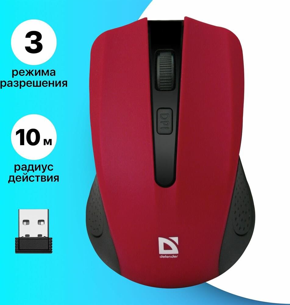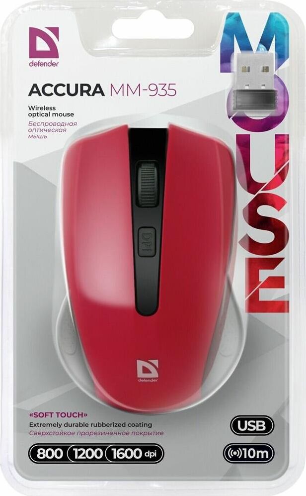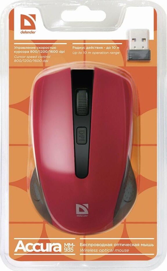 Мышь беспроводная DEFENDER (52937) ACCURA MM-935 красный