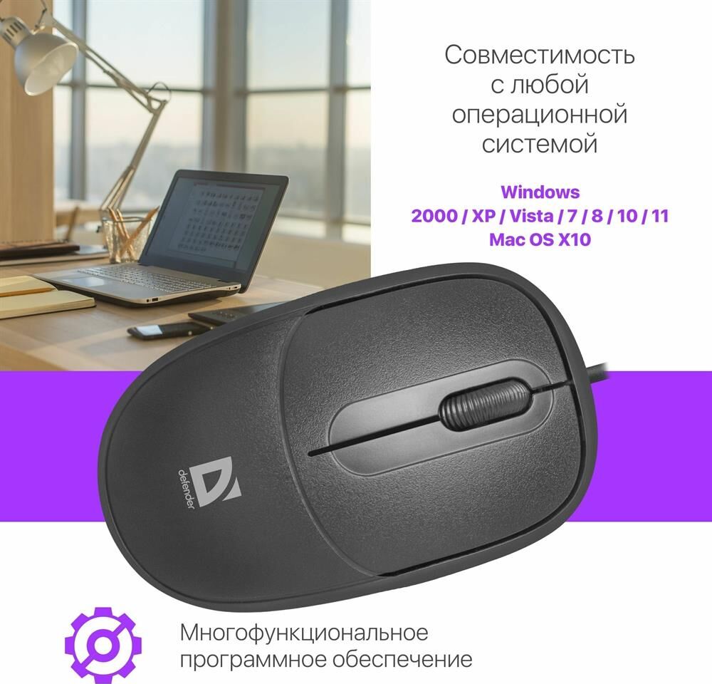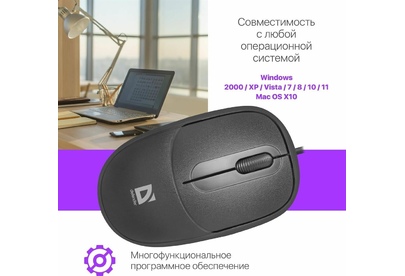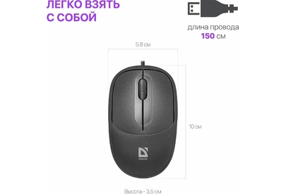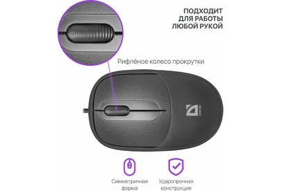 Мышь проводная, оптическая, интерфейс USB, количество кнопок - 2 + колесо-кнопка, разрешение - 1000 dpi, длина кабеля - 1.4 м.