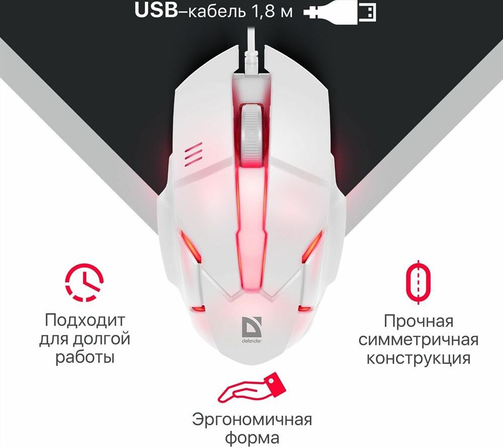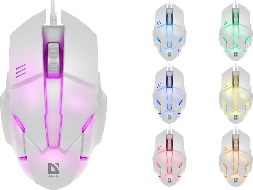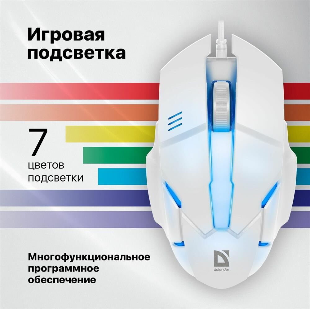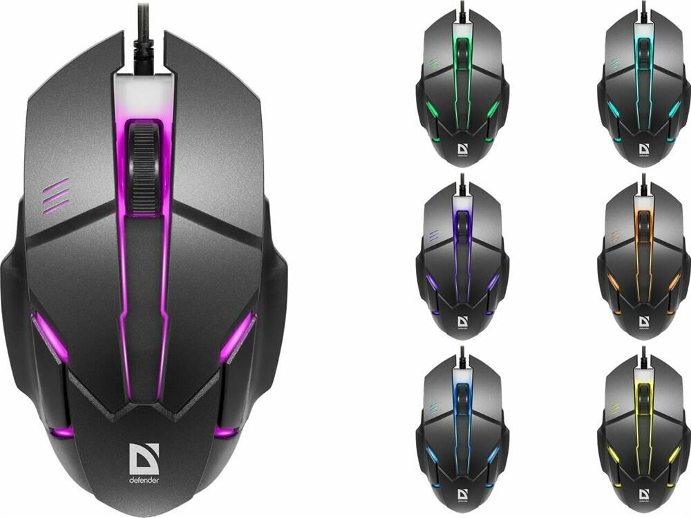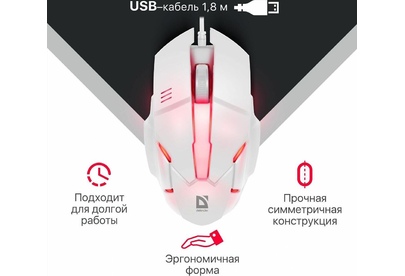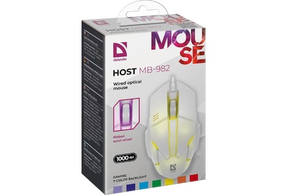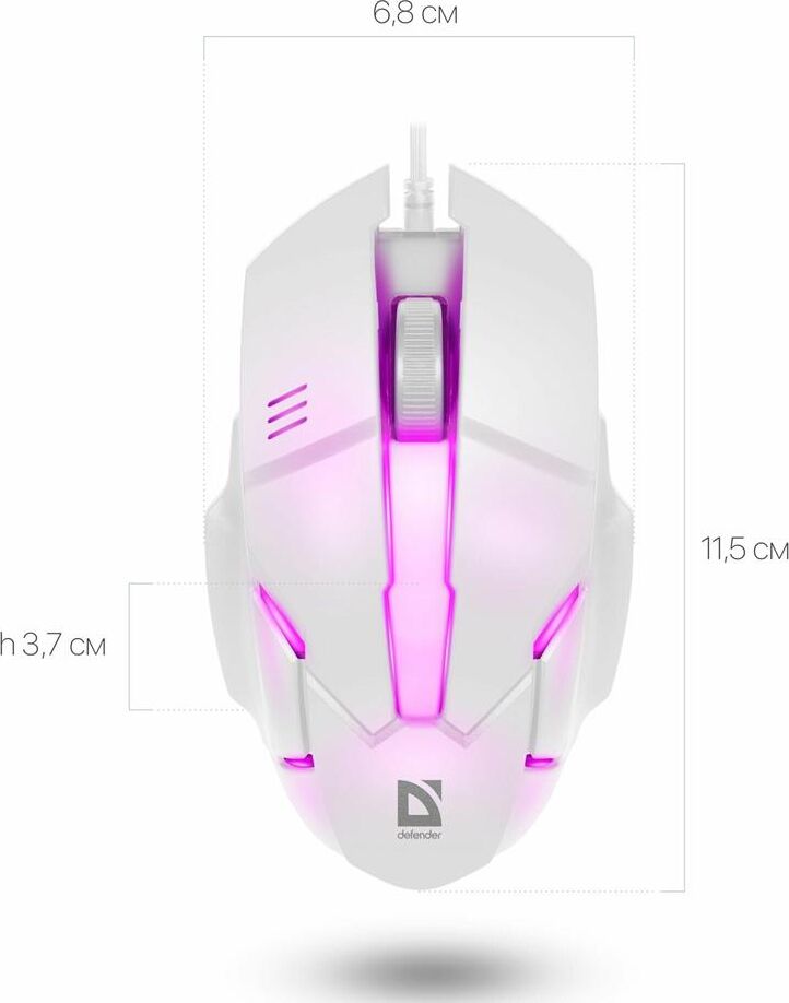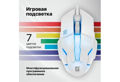 Мышь проводная, оптическая, интерфейс USB, количество кнопок - 2, колесо проктурки, разрешение - 1000 dpi, 7 цветов подсветки, длина кабеля - 1,8 м.